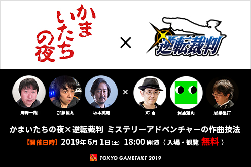 『かまいたちの夜』ディレクターの麻野一哉、『かまいたちの夜』音楽担当の加藤恒太、『真かまいたちの夜 11人目の訪問者』音楽担当の坂本英城と、『逆転裁判』の生みの親である巧舟、『逆転裁判』音楽担当の杉森雅和、『逆転裁判3』『逆転裁判5』『逆転裁判6』『逆転検事』シリーズ音楽担当の岩垂徳行が勢揃い!