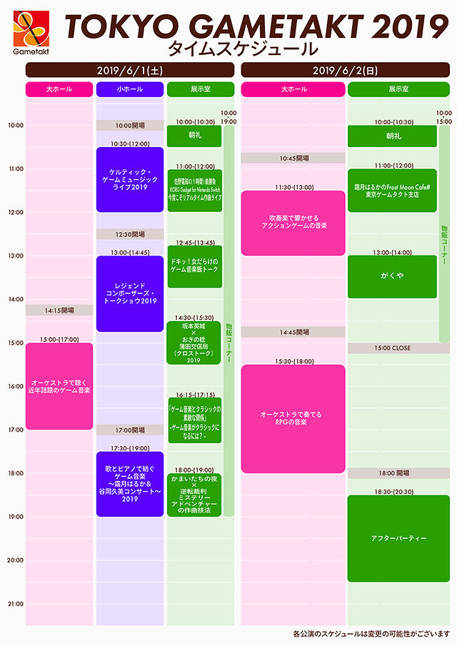 公演日時 2019/06/02(日) 14:45 開場 15:30 開演 チケット S席…¥5,500 / A席…¥5,000 指揮 岩垂徳行/松元宏康 出演者 ゲームタクトオーケストラ 公演テーマ RPG 演奏予定楽曲